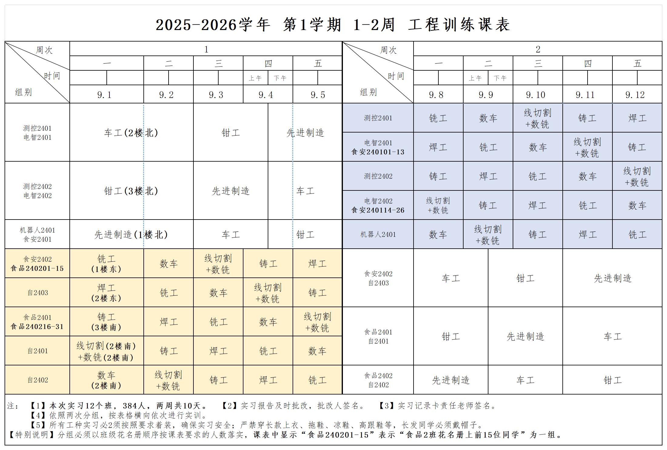 实习班级:测控2401-2402、电智2401-2402、机器人2401、食安2401-2402、自动化2401-2403