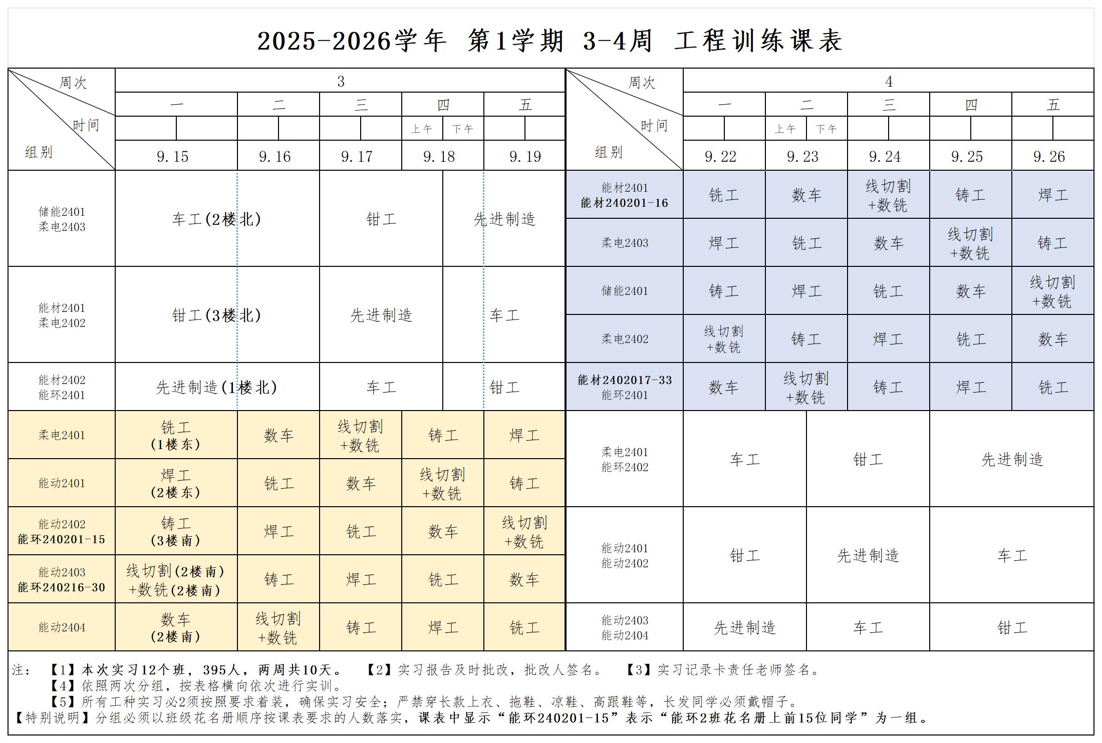实习班级:能环2401-2402、能材2401-2402、储能2401、能动2401-2404、柔电2401-2403
