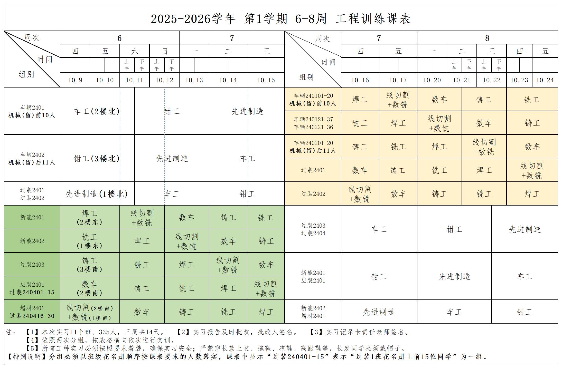 实习班级:车辆2401-2402、过装2401-2404、机械(留)2401、新能2401-2402、增材2401、应装2401