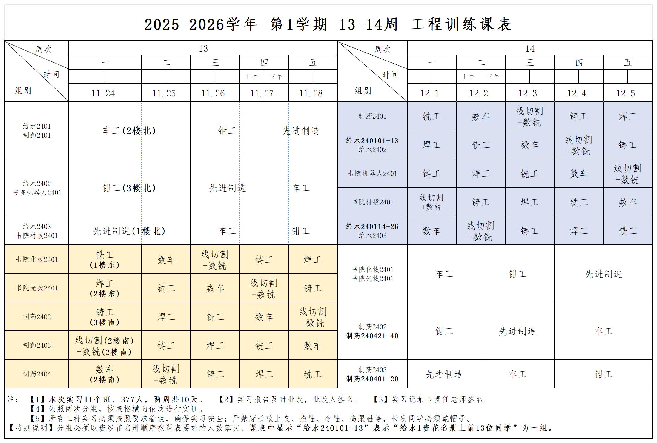实习班级:给水2401-2403、制药2401-2404、书院(材拔)2401、书院(光拔)2401、书院(化拔)2401、书院(机器人)2401
