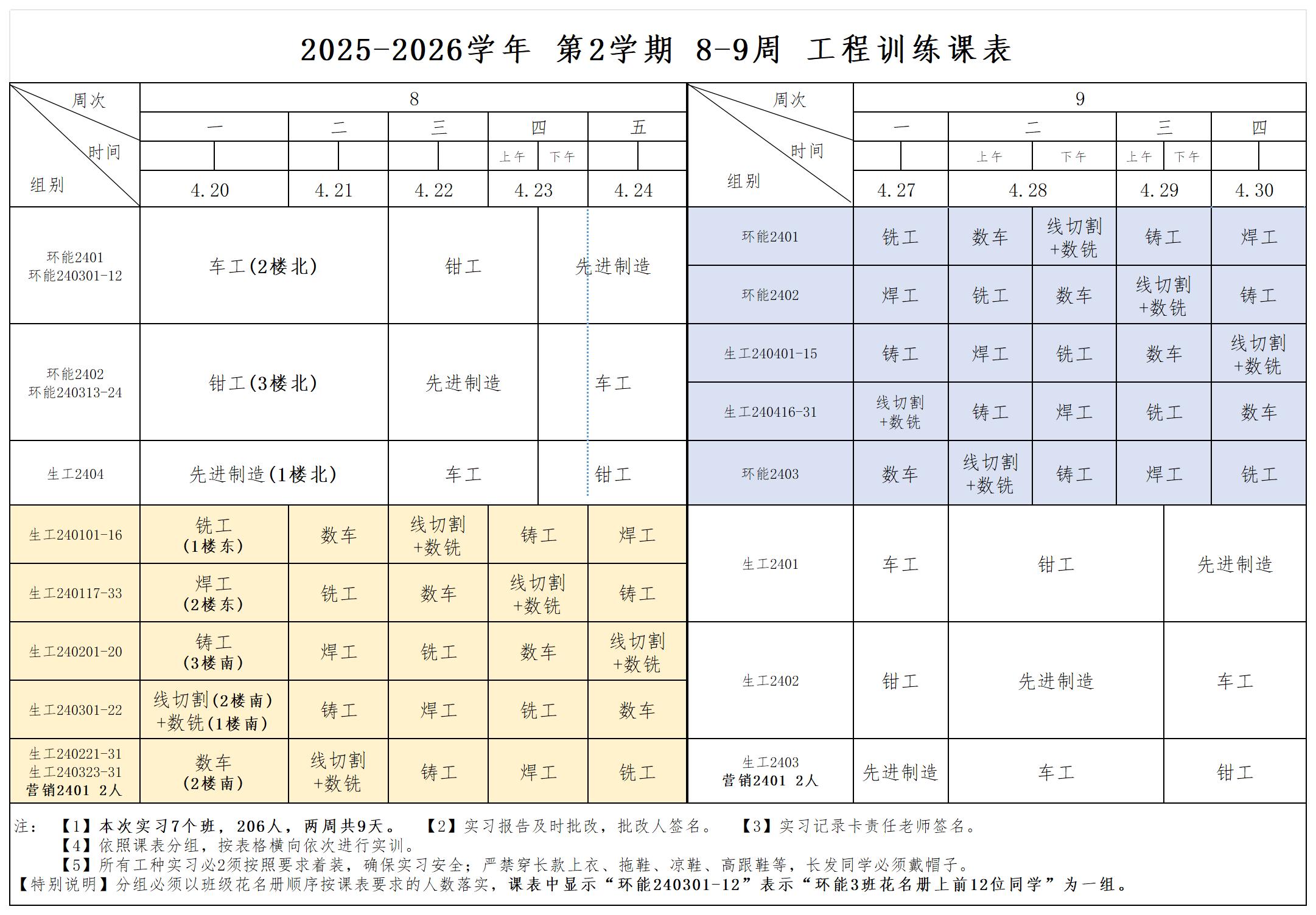 实习班级:环能2401-2403、生工2401-2404