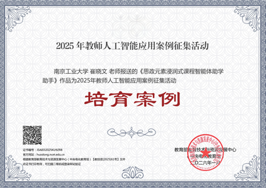近日,教育部教育技术与资源发展中心(中央电化教育馆)公布了2025年教师人工智能应用案例征集结果,我校食品与轻工学院崔晓文老师的《思政元素浸润式课程智能体助学助手》案例成功入选高等教育类培育案例。